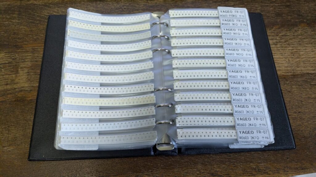 袋にどっちゃり入っていた部品は一冊のサンプル本にあっさり収まりました。部品の残量も把握しやすくなって良い感じです。この管理方法でうまく行くかしばらくやってみようと思います。