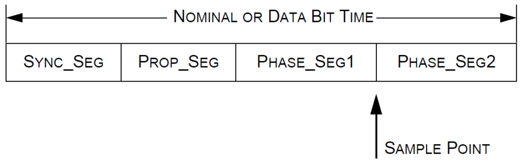 以下の図は CAN Bit Time を構成するセグメントの説明です。Bit Time とは CAN 1 ビット分の時間です。